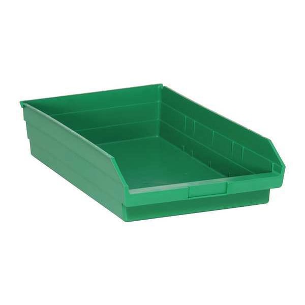 Shelf Storage Bin, Polypropylene, Green, 4 in H, 11 1/8 in W, 17 7/8 in L