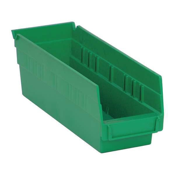 Shelf Storage Bin, Polypropylene, Green, 4 in H, 4 1/8 in W, 11 5/8 in L