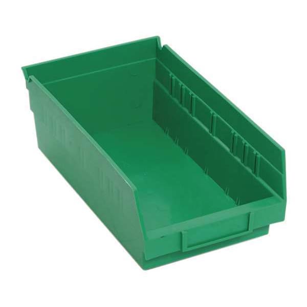 Shelf Storage Bin, Polypropylene, Green, 4 in H, 6 5/8 in W, 11 5/8 in L
