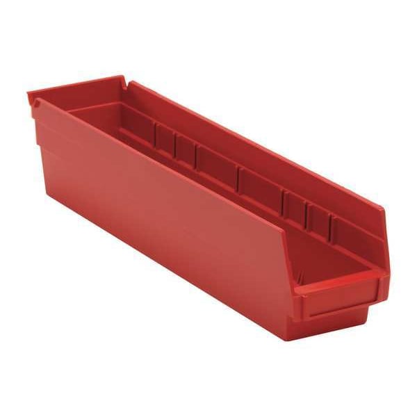 Shelf Storage Bin, Polypropylene, Red, 4 in H, 4 1/8 in W, 17 7/8 in L