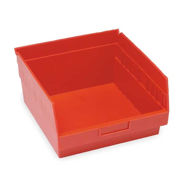 Shelf Bin, Color Red, Includes Dividers Dividers Not Included, Includes Label Holder Label Holder Included, Material Plastic, Maximum Operating Temperature 250 Degrees F, Overall Height 6 in, Overall Length 11 5/8 in, Overall Width 11 1/8 in, Stackable Not Stacking Capable, Weight Capacity 50 lb, Mobility Stationary, Nestable Nesting Capable, Number of Divider Slots 8, Number of Long Divider Slots 0, Number of Short Divider Slots 8, Number of Dividers Not Applicable