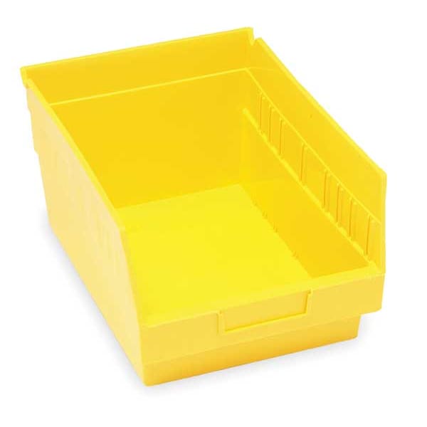 Shelf Bin, Color Yellow, Includes Dividers Dividers Not Included, Includes Label Holder Label Holder Included, Material Plastic, Maximum Operating Temperature 250 Degrees F, Overall Height 6 in, Overall Length 11 5/8 in, Overall Width 8 3/8 in, Stackable Not Stacking Capable, Weight Capacity 50 lb, Mobility Stationary, Nestable Nesting Capable, Number of Divider Slots 8, Number of Long Divider Slots 0, Number of Short Divider Slots 8, Number of Dividers Not Applicable
