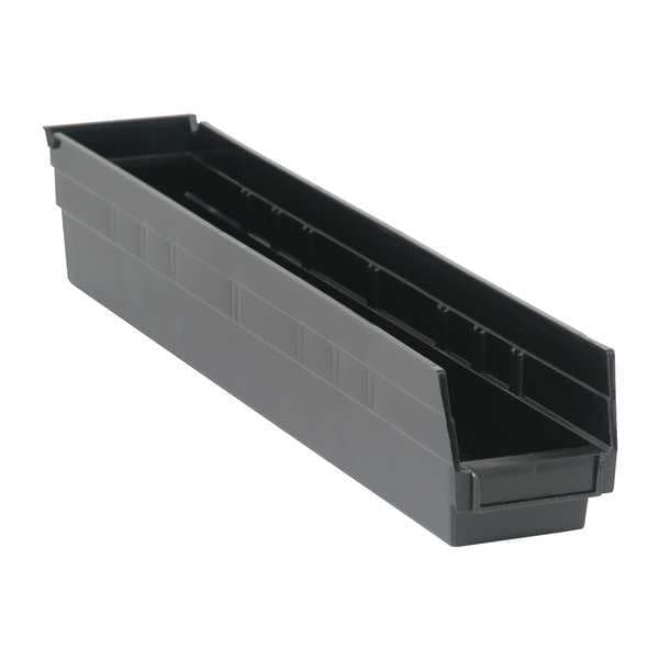 Shelf Storage Bin, Polypropylene/Polyethylene, Black, 4 in H, 4 1/8 in W, 23 5/8 in L