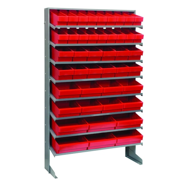 Pick Rack, slopped, single sided, 12''D x 36''W x 63-1/2''H, 400 lbs. capacity, includes: 8 shelves, 18 QED501, 12 QED601, 8 QED701 and 6 QED801 red bins, steel