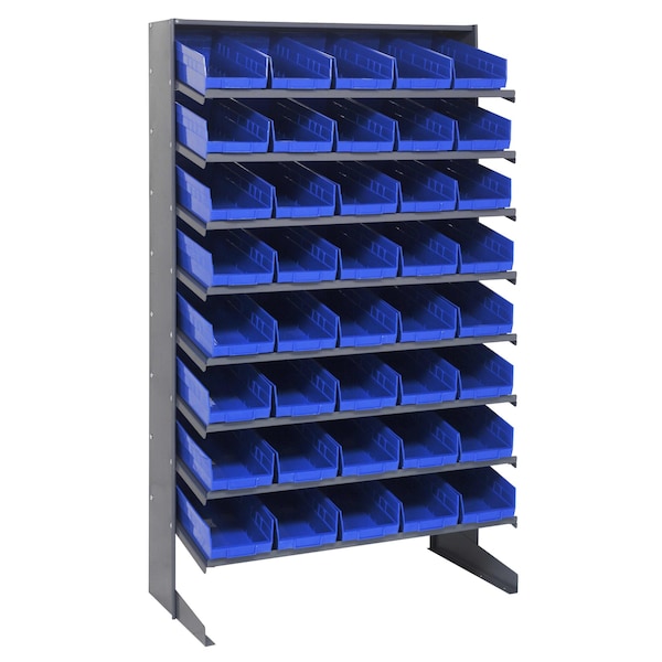 Pick Rack, slopped, single sided, 18''D x 36''W x 60''H, 400 lbs. capacity, includes: 8 shelves and 40 QSB104 blue bins, steel