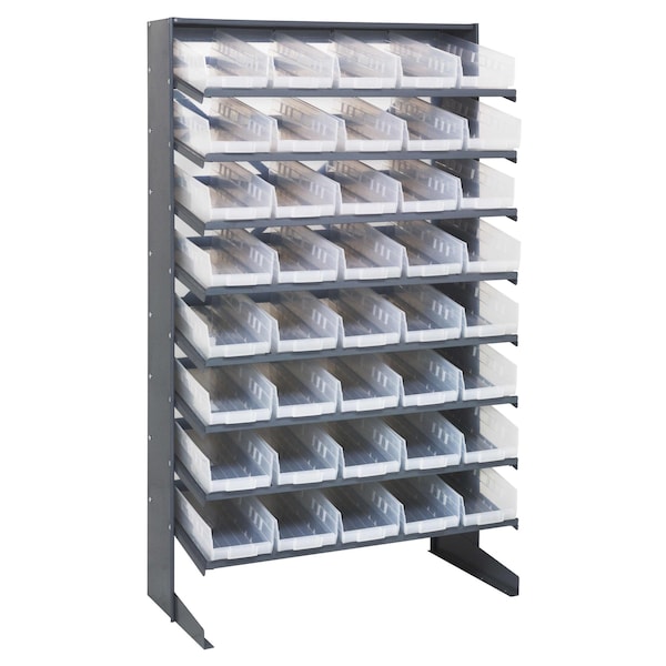 Pick Rack, slopped, single sided, 18''D x 36''W x 60''H, 400 lbs. capacity, includes: 8 shelves and 40 QSB104 clear bins, steel
