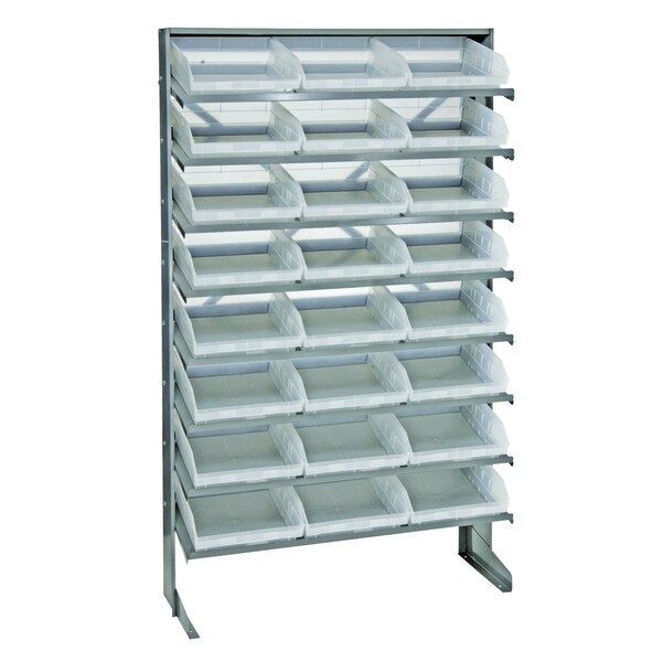 Pick Rack, slopped, single sided, 12''D x 36''W x 60''H, 400 lbs. capacity, includes: 8 shelves and 24 QSB109 clear bins, steel