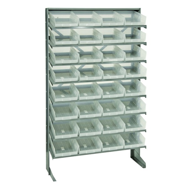 Pick Rack, slopped, single sided, 12''D x 36''W x 60''H, 400 lbs. capacity, includes: 8 shelves and 32 QSB107 clear bins, steel