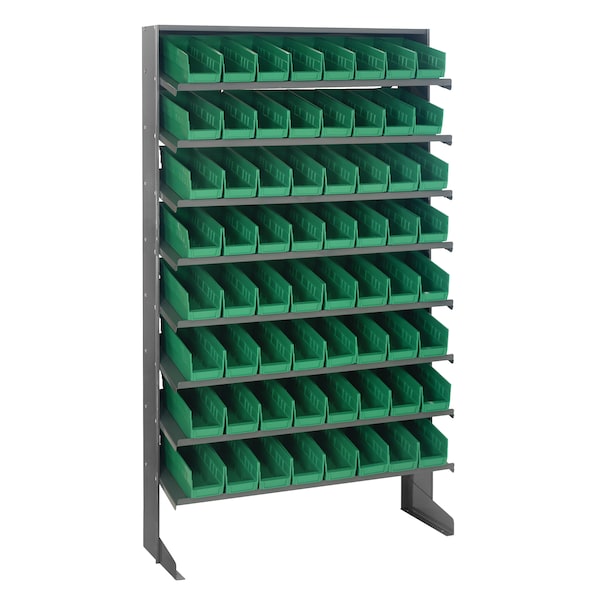 Pick Racks provide a convenient high density, easy access, sloped shelving system, available as bench units, single and double sided free standing and mobile units. Unit comes complete with Economical Shelf Bins. Sloped shelving unit keeps small and medium sized parts easily accessible. Open hopper front bins with label area, provide fast access to stored items. This all-in-one unit is easy to clean and will not rust or corrode. Bins are available in: Blue, Green, Ivory, Red, Yellow, Black and Clear. One bin color per unit.