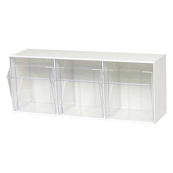 Tip-Out Bins, Frame Color White, Frame Finish Unfinished, Mounting Location Freestanding, Wall, Overall Height 9 1/2 in, Overall Length 7 3/4 in, Overall Width 23 5/8 in, Stackable Stacking Capable, Volume Capacity 0.66 cu ft, Weight Capacity 50 lb, Number of Tiers 1, Bin Color Clear, Bin Inside Depth 5 7/8 in, Bin Inside Height 8 5/8 in, Bin Inside Width 7 3/8 in, Divider Adjustment Increments Not Applicable, Includes Dividers Dividers Not Included, Material Plastic, Mobility Stationary