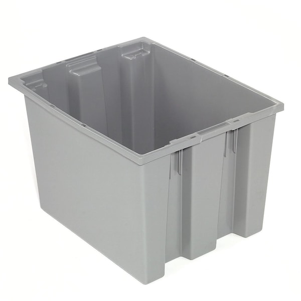 Stack & Nest Storage Container, 23-1/2 in L x 15-1/2 in W x 12 in H, Gray, Polypropylene