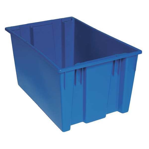Stacking and Nesting Tote, Container Wall Type Solid, Fork Pockets Fork Pockets Not Included, Includes Lid Lid Not Included, Material Plastic, Maximum Operating Temperature 135 Degrees F, Minimum Operating Temperature -20 Degrees F, Body Color Blue, Nestable Nesting Capable, Overall Height 15 in, Overall Length 29 1/2 in, Overall Width 19 1/2 in, Resistant To Chemical, Corrosion, Water, Stackable Stacking Capable, Stacking Capacity 100 lb, Volume Capacity 27.7 gal, Weight Capacity 100 lb