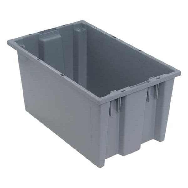 Stacking and Nesting Tote, Container Wall Type Solid, Fork Pockets Fork Pockets Not Included, Includes Lid Lid Not Included, Material Plastic, Maximum Operating Temperature 135 Degrees F, Minimum Operating Temperature -20 Degrees F, Body Color Gray, Nestable Nesting Capable, Overall Height 9 in, Overall Length 18 in, Overall Width 11 in, Resistant To Chemical, Corrosion, Water, Stackable Stacking Capable, Stacking Capacity 100 lb, Volume Capacity 5.7 gal, Weight Capacity 60 lb