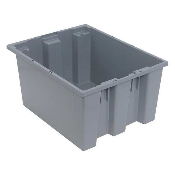 Stacking and Nesting Tote, Container Wall Type Solid, Fork Pockets Fork Pockets Not Included, Includes Lid Lid Not Included, Material Plastic, Maximum Operating Temperature 135 Degrees F, Minimum Operating Temperature -20 Degrees F, Body Color Gray, Nestable Nesting Capable, Overall Height 10 in, Overall Length 19 1/2 in, Overall Width 15 1/2 in, Resistant To Chemical, Corrosion, Water, Stackable Stacking Capable, Stacking Capacity 100 lb, Volume Capacity 9 gal, Weight Capacity 55 lb