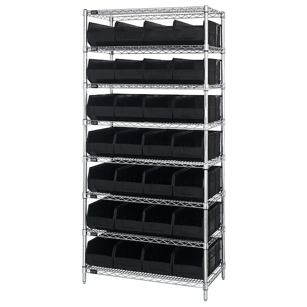 Combination of stackable shelf bins on to a wire shelving unit as one complete package. The stackable shelf bin is a hybrid bin combining the stacking characteristics of an Ultra bin and the light duty characteristics of a shelf bin. These bins work perfectly in a wire shelving unit.
