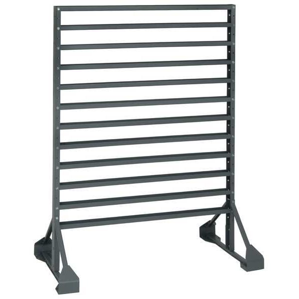 Bin Rail Floor Rack, Number of Bins 0, Overall Depth 20 in, Overall Height 54 in, Overall Width 36 in, Rack Color Gray, Rail Finish Powder Coated, Rail Material Steel, Number of Rails 12, Includes Mounting Hardware Yes, ESD Conductive No, Frame Material Steel, (12) Rails, Number of Usable Sides 2, Load Capacity per Rail 133 lb, Whole Unit Load Capacity 1,600 lb