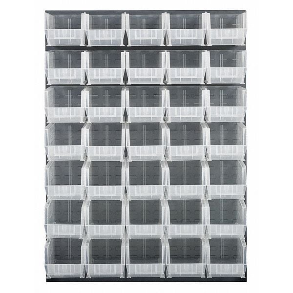 Louvered Panel, Bin Color Clear, Bin Depth 14 3/4 in, Bin Height 7 in, Bin Style Hang and Stack, Bin Width 8 1/4 in, Number of Bins 35, Overall Depth 1 in, Overall Height 61 in, Overall Width 48 in, 500 lb Whole Unit Load Capacity, Number of Sides 1, Gray, Powder Coated, Steel, Louvered Panel Louvered Rack Style, Model QLP-4861 Louvered Panel and Model QUS240CL Bins