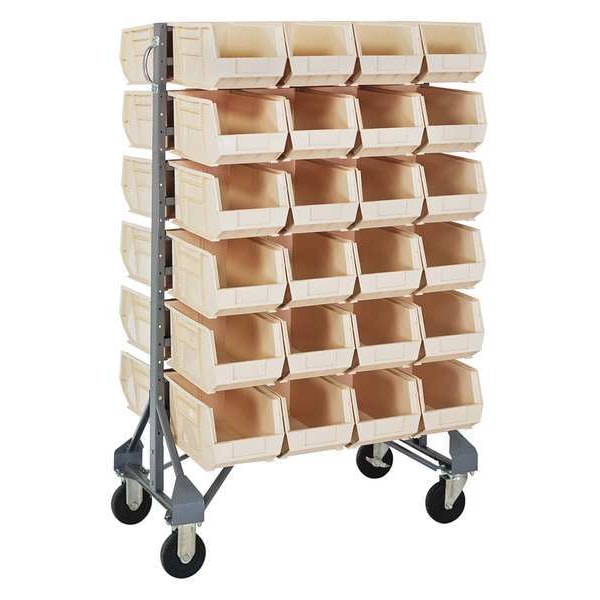 Steel Mobile Bin Rail Floor Rack, 36 in D x 53 in H x 20 in W, Ivory