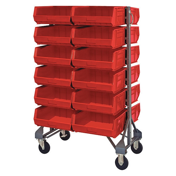Steel Mobile Bin Rail Floor Rack, 36 in D x 53 in H x 20 in W, Red