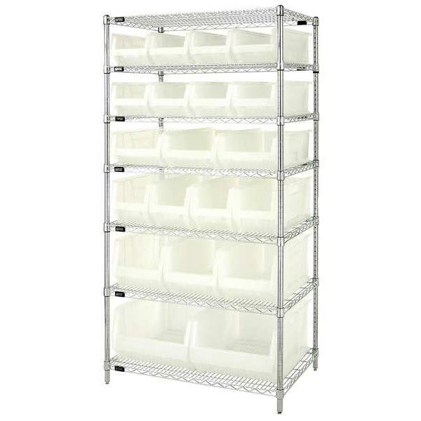 Steel, Polypropylene Bin Shelving, 24 in D x 74 in H x 36 in W, 7 Shelves, Clear