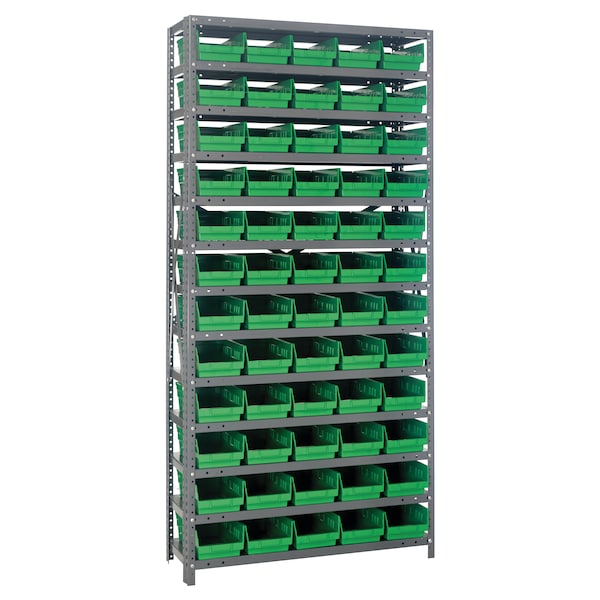 Economical small parts storage steel systems keep parts easily accessible. Open hopper front bins with label area provide fast access to store items. This all-in-one unit is easy to clean and will not rust or corrode. Heavy-duty, high grade shelving offers 400 lb. capacity per shelf. 36” wide shelving has a smooth powder coat finish. Bins re available in 7 colors.