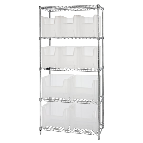 Organize, store and access your medium or large parts with this Giant Stack Container Wire Shelving System. 800 lb. capacity per shelf. System may be made mobile with the addition of the WR-00H mobile kit.