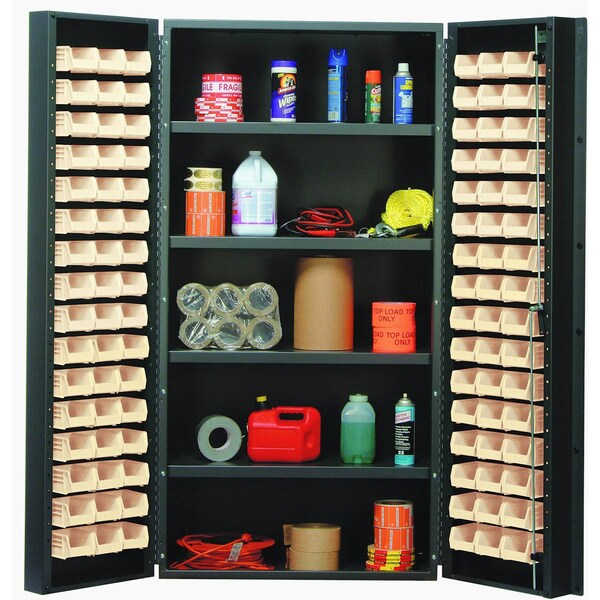 Heavy-Duty 36'' Bin Cabinet, 36''W x 24''D x 72''H, 800 lb. capacity per interior shelf, 14 gauge all welded construction, includes: 32 QUS232 clear bins, gray powder-coated finish