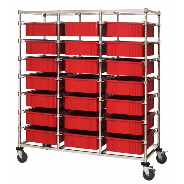 Bin Cart, mobile, triple bay, 24''W x 60''L x 69''H, includes: 21 22-1/2''L x 17-1/2''W x 6''H DG93060 red bin, chrome plated finish, shipped KD