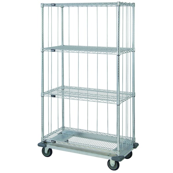 Mobile Enclosure Cart, 36''W x 24''D x 70''H, includes: 4 wire shelves, 4 63''H posts, rods and tabs kits, 1 dolly base, & 4 plate thermoplastic resin casters 2 rigid, 2 swivel with brakes, chrome plated finish
