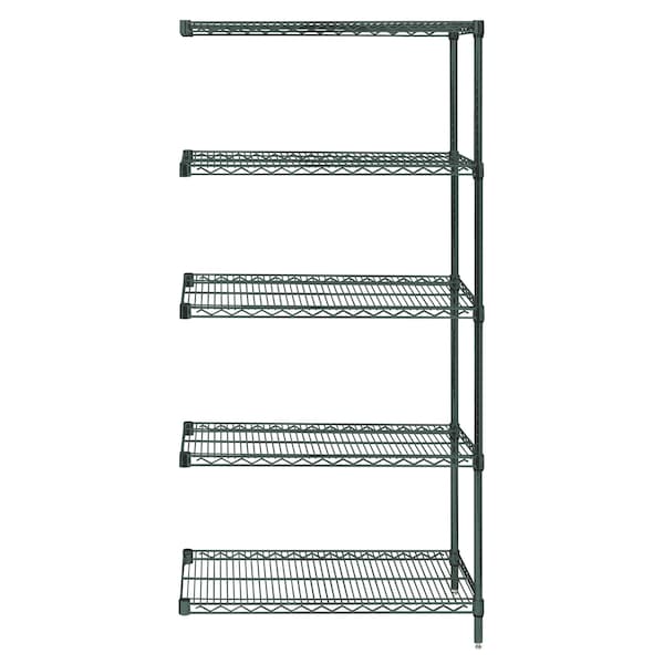Wire Shelving Add-On Kit, 48''W x 21''D x 74''H, 600 - 800 lb. capacity, includes 5 wire shelves, 2 posts and 10 S-Hooks, green epoxy antimicrobial finish, NSF, shipped KD