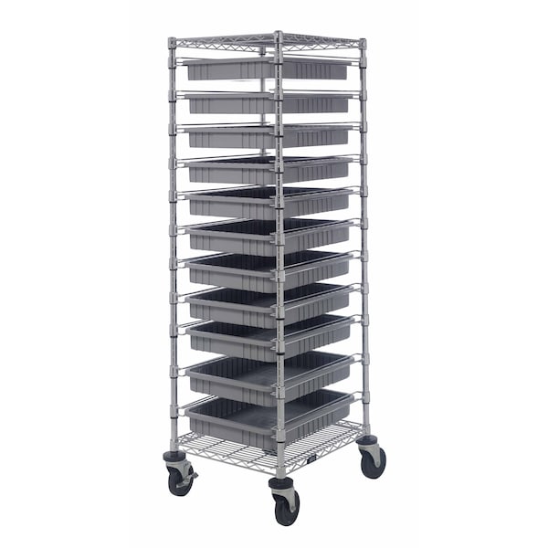 Bin Cart, mobile, 21''W x 24''L x 69''H, includes: 2 wire shelves, 11 22-1/2''L x 17-1/2''W x 3''H DG93030 gray bin and set of casters, chrome plated finish