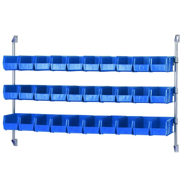 Cantilever Bin Holder Post Wall Mount, 60''W x 10-7/8''D x 34''H, includes: 3 bin rails, 30 blue bins QUS230BL, 2 34'' posts, & 4 post wall brackets, chrome plated finish, NSF