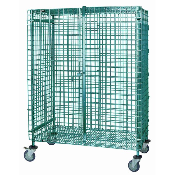 Security Unit, mobile, 36''W x 18''D x 69''H, includes: 1 top shelf, 1 bottom shelf, 1 security panel set includes back and sides, 1 pair of security panel doors, and 4 posts, donut bumpers, 4 5'' poly stem casters 2 with brakes, green epoxy antimicrobial finish, NSF, shipped KD