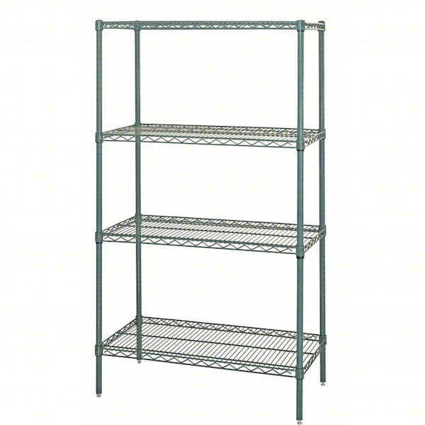 Wire Shelving, Green Color, Epoxy Coated, Load Capacity per Shelf 600 lb, Material Steel, Overall Depth 36 in, Overall Height 63 in, Overall Width 60 in, Dry, Wet Recommended Environments, Standards NSF Approved, 2,400 lb, Shelf Configuration Starter, Number of Shelves 4