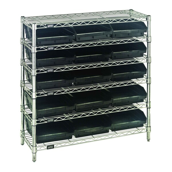 Bin Wire Shelving System, conductive, 36''W x 12''D x 36''H overall size, 800 lb. capacity per shelf, includes: 6 wire shelves, 4 posts, 15 QSB109 bins, chrome plated finish