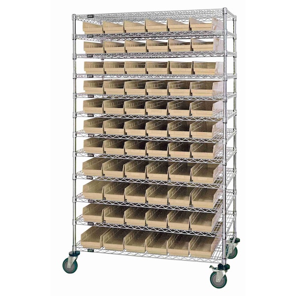 Bin Wire Shelving System, 60''W x 24''D x 74''H, 600 lbs load capacity per shelf, includes: 12 shelves and 88 QSB106 ivory bins, chrome plated finish, shipped KD