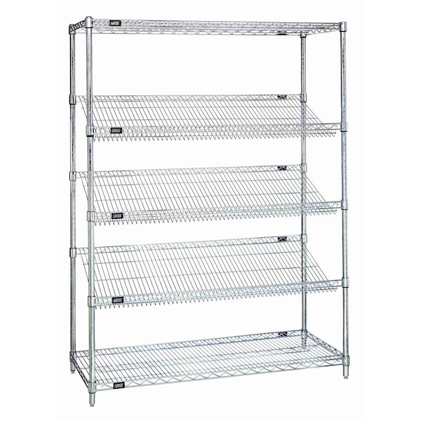 Slanted Shelving, stationary, 48''W x 18''D x 63''H, includes: 2 flat wire shelves, 3 slanted wire shelves, 4 63'' posts, chrome plated finish, NSF