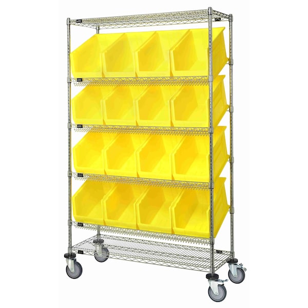 Slanted Shelf Cart, 48''W x 24''D x 80''H, 1200 lbs load capacity, includes: 2 flat and 4 slanted shelves, and 16 QUS953 yellow bins, chrome plated finish, shipped KD