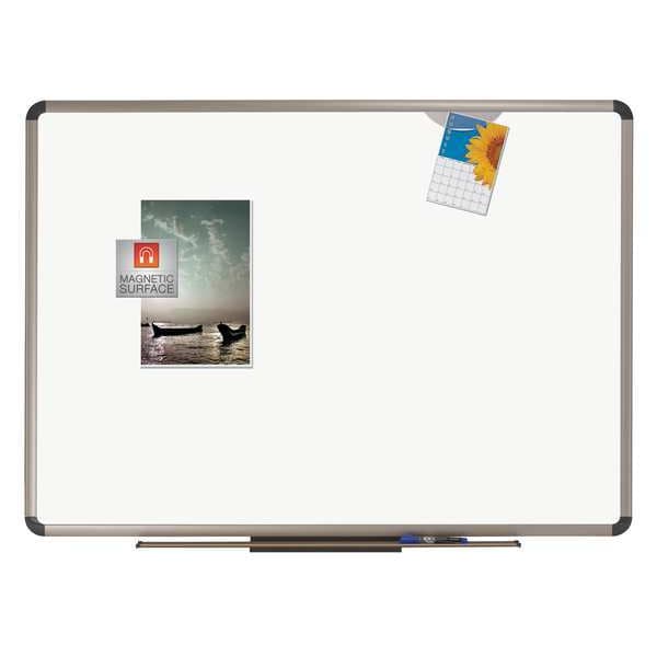Dry Erase Board, Board Properties Magnetic, Mounting/Mobility Type Wall Mounted, Board Color White, Dry Erase Height 24 in, Dry Erase Width 36 in, Depth 1 11/16 in, Dry Erase Surface Finish Gloss, Adjustable Height Range Not Adjustable, Frame Color Titanium, Board Frame Material Aluminum, Frame Material Aluminum, Dry Erase Surface Type Porcelain, Corner Shape Rounded, Includes (4) Dry-Erase Markers, Marker Tray, Mounting Hardware and Lifetime Warranty, Quick Clips