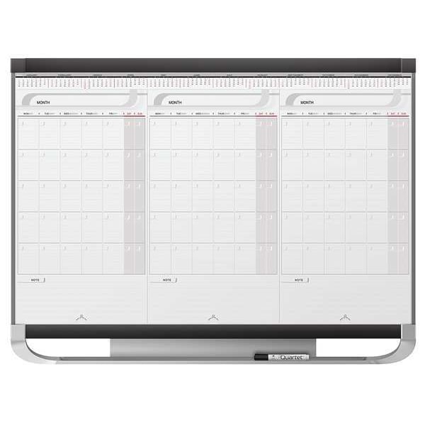 Calendar Planning Board, Board Properties Magnetic, Mounting/Mobility Type Wall Mounted, Board Color White/Gray, Dry Erase Height 24 in, Dry Erase Width 36 in, Dry Erase Surface Finish Gloss, Frame Color Black/Silver, Board Frame Material Fiberboard/Plastic, Frame Material Fiberboard, Plastic, Dry Erase Surface Type Plastic, Corner Shape Square, Includes Tray, Marker