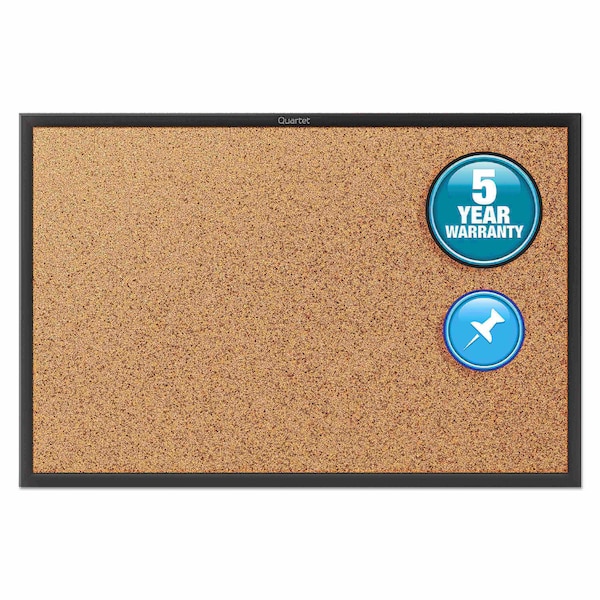 Keep important information in view with this natural corkboard that functions as a convenient display center. The durable cork surface of this bulletin board includes a self-healing feature to prevent crumbling over time. Plus, the finished frame adds a touch of contemporary professionalism. Durable, natural-cork bulletin board secures documents with push pins. Delivers effective performance when communication is needed in low-use break rooms or on factory floors. Easily secure to wall with heavy-duty, factory-installed mounting system.