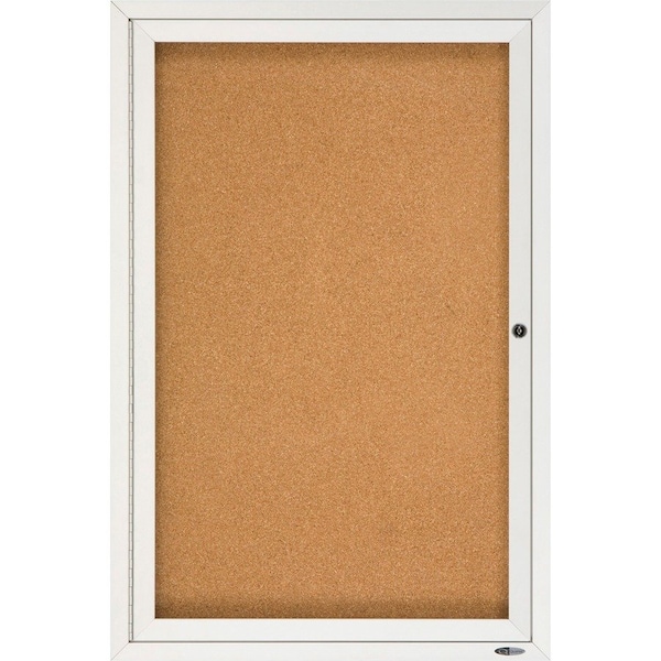 Enclosed cork bulletin board delivers quality performance when communication is needed in any indoor environment. Locking, shatterproof acrylic door allows posting, protecting and easily updating important messages. Highly durable, enclosed natural-cork bulletin board backed by high-density fiberboard secures documents with pushpins. Self-healing surface and high-density backing deliver maximum pin-holding power, ensuring documents stay securely posted. Satin finish, anodized aluminum frame with full-length hinges complements any interior. Indoor bulletin board includes one key per lock. Hanging devices are factory-installed. Specially designed security lock system secures board to wall.