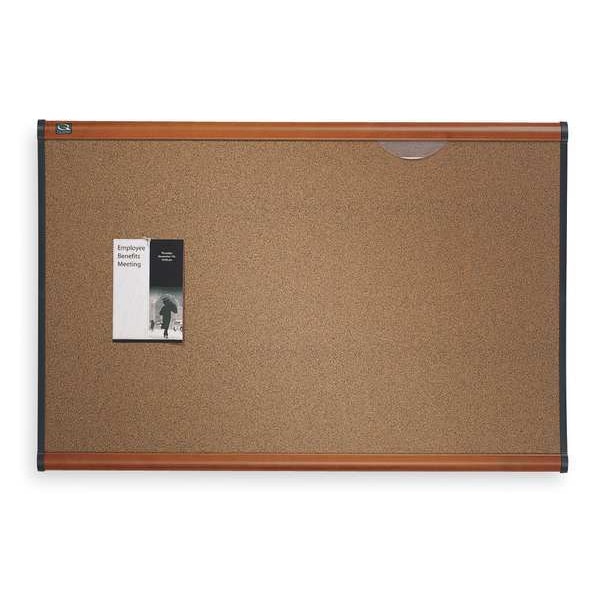 Bulletin Board, Board Material Cork, Board Color Natural, Board Frame Material Fiberboard/Plastic, Width 36 in, Height 24 in, Frame Color Cherry, For Use Indoors, Includes Clips, Mounting/Mobility Type Wall Mounted