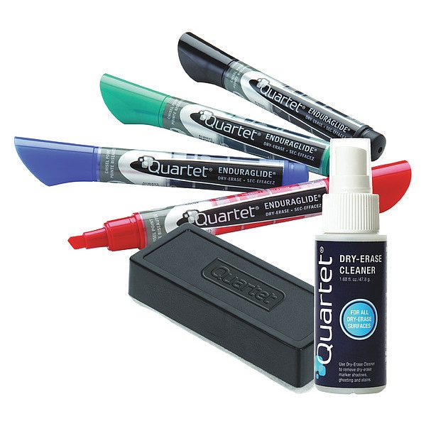 Dry Erase Marker Set, Chisel, Marker Cap Capped, Barrel Type Standard, Low Odor Low Odor, Marker Ink Color Assorted, Marker Set Ink Colors Black, Blue, Green, Red, Number of Markers 4, Standards ACMI AP, Includes (4) Markers, Board Spray Cleaner, Eraser, Package Quantity 4