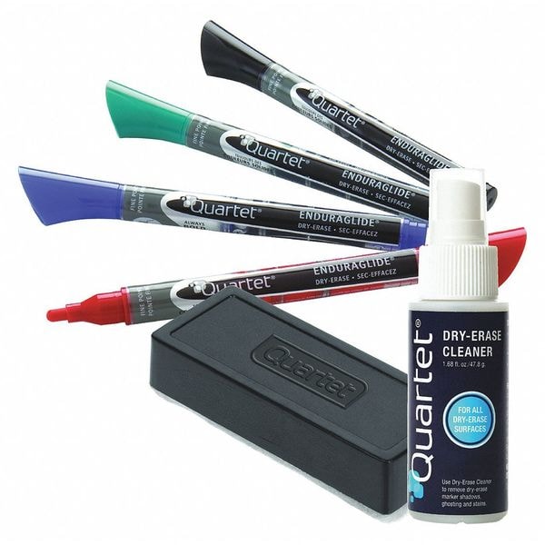Dry Erase Marker Set, Fine, Marker Cap Capped, Barrel Type Standard, Low Odor Low Odor, Marker Ink Color Assorted, Marker Set Ink Colors Black, Blue, Green, Red, Number of Markers 4, Standards ACMI AP, Includes (4) Markers, Board Spray Cleaner, Eraser, Package Quantity 5