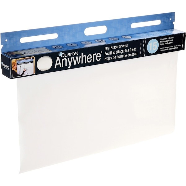 Dry-Erase Sheets, Tear Off Shts, 40ft RL, 15 SHT/RL, White PK