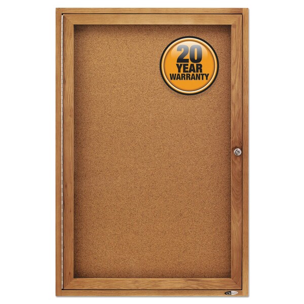Enclosed Bulletin Board, Natural Cork/Fiberboard, 24 x 36, Oak Frame (Discontinued)