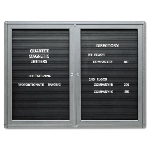 Protect and preserve important communications with the Quartet Radius Design Letter Directory. The shatterproof window and locking door make the enclosed letter board an ideal place to safely display messaging in indoor environments. The hard-working surface holds messages securely in place. White plastic letters (sold separately) stand out on a solid black background for maximum readability. The durable, powder-coat finish delivers long-lasting, attractive performance. The lightweight, aluminum frame helps makes the directory easy to install.