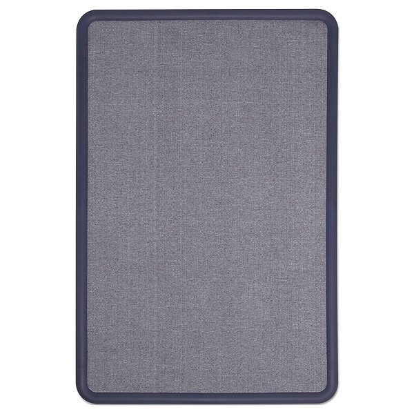 Highly durable fabric bulletin board surface backed by high-density fiberboard secures documents with push pins. Delivers quality performance when communication and collaboration is needed in frequent-use office environments. Self-healing surface eliminates unsightly pin holes and will not fade or crumble like traditional cork boards, even after years of use. Simple mounting system allows for vertical or horizontal installation. Contemporary, navy plastic frame and coordinating fabric surface energize displays and brighten rooms. Available in a variety of sizes and colors.
