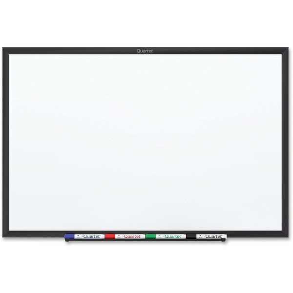 Upscale, magnetic dry-erase board offers a smooth, blank writing surface that is ideal for jotting down reminders, collaborating with others and keeping yourself organized. Ideal for moderate use in spaces with regular traffic. Magnetic quality with steel backing allows the surface of the board to double as a whiteboard and magnetic bulletin board. Clearly write messages using dry-erase markers and hang documents on the board using magnets. Black finish, aluminum frame is sturdy and stylish. Attached marker tray provides convenient storage for accessories. Board also includes one dry-erase marker with a chisel tip and easy-to-use hardware for wall mounting. To extend the life span of the board, clean the surface regularly with Quartet cleaning solutions.